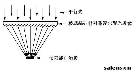1.優(yōu)點(diǎn):菲涅爾透鏡是平面化的聚光鏡,重量輕,價(jià)格比較低,也有點(diǎn)聚焦和線聚焦之分,一般由有機(jī)玻璃或其它透明塑料制成,也有用玻璃制作的,主要用于聚光太陽電池發(fā)電系統(tǒng)。我國從70年代直至90年代,對用于太陽能裝置的菲涅爾透鏡開展了研制。采用模壓方法加工大面積的柔性透明塑料菲涅爾透鏡,也可采用組合成型刀具加工直徑1.5m的點(diǎn)聚焦菲涅爾透鏡。近來,通常采用模壓方法加工線性玻璃菲涅爾透鏡。